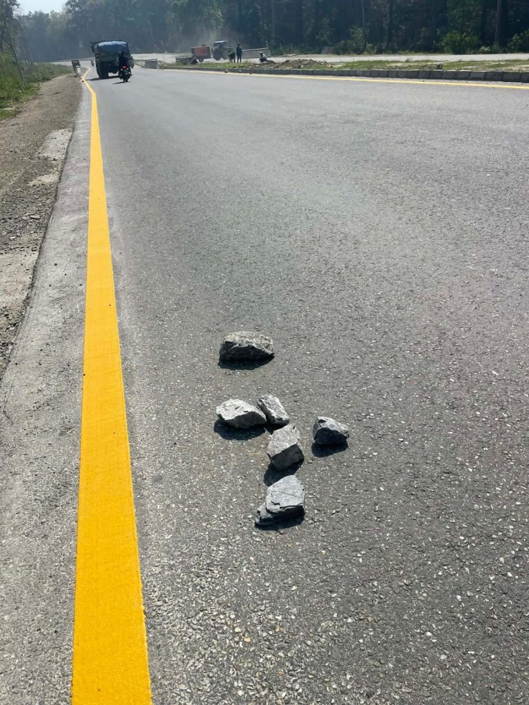बुटवलको मुख्य सडक, विशेषगरी राजमार्ग चौराहादेखि सुनवलतर्फको सडक र चिडियाखोलासम्मको क्षेत्रमा चुनढुङ्गाका ठूला टुक्राहरु सडकभरी छरिएका भेटिन्छन् । जसले गर्दा साना सवारी साधन, मोटरसाइकल र स्कुटर दुर्घटनाको उच्च जोखिम बढेको छ । टिप्परबाट खसेका ढुङ्गामा मोटरसाइकलको चक्कामा परेर कतिपय दुर्घटना भइसकेका छन् । प्रशासनले टिप्परलाई केही नभन्ने, हाम्रो ज्यान जोखिममा छ, बुटवलका स्थानीय रामप्रसाद पौडेलको गुनासो छ । खसेका ढुङ्गाले सडकको संरचनालाई समेत बिगार्ने उनको भनाई छ ।